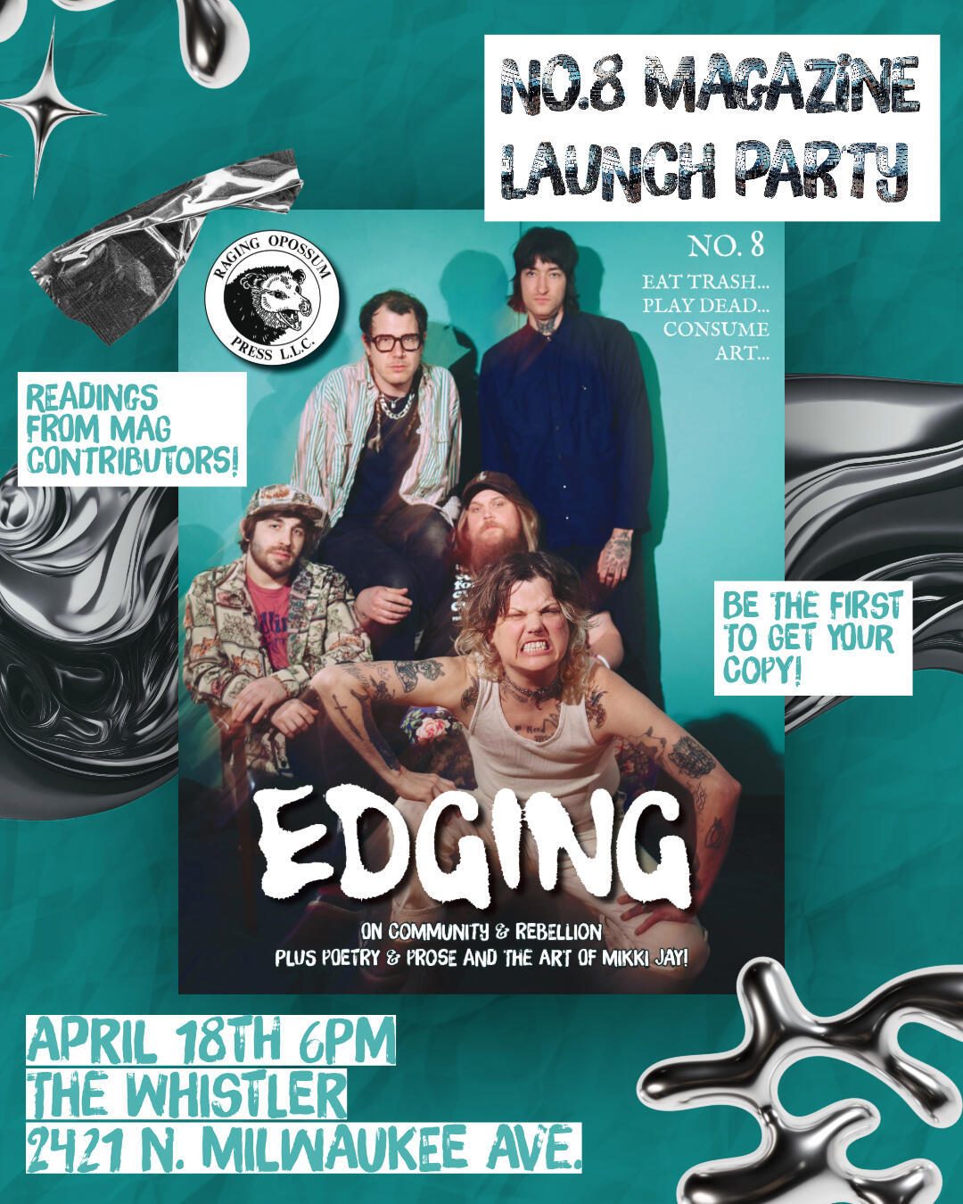 I design the quarterly magazines at Raging Possum Press, featuring poetry, prose, visual art, and features on local musicians. Take a look at a sample of our most recent work here: